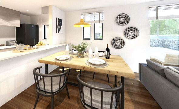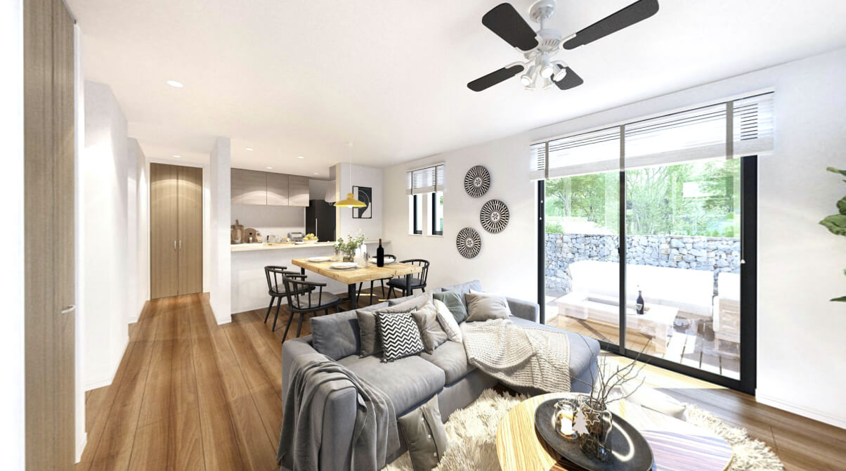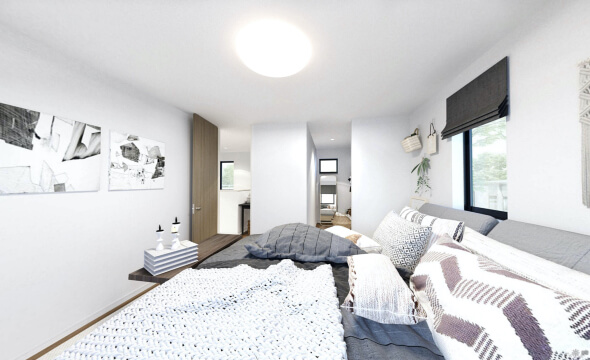 Aシリーズの中で最もスタンダードなタイプが79です。オーソドックスに一番使いやすい長方形のLDKで、必要なものは全てここに。まず入ってすぐの玄関はゆったりとした間口で、趣味のグッズもおける便利なシューズクロークが。18帖のリビング・ダイニングは掃き出しの窓に向かって大きく開けています。カウンター付の対面キッチンが更なる開放感・一体感を。パウダールームの洗面台も広々としていて、2階の主寝室には大きなウォークインクローゼットを備えています。各部屋に十分な収納を確保しながら、使い方自由のフリースペースが空間の使い方の幅を広げます。